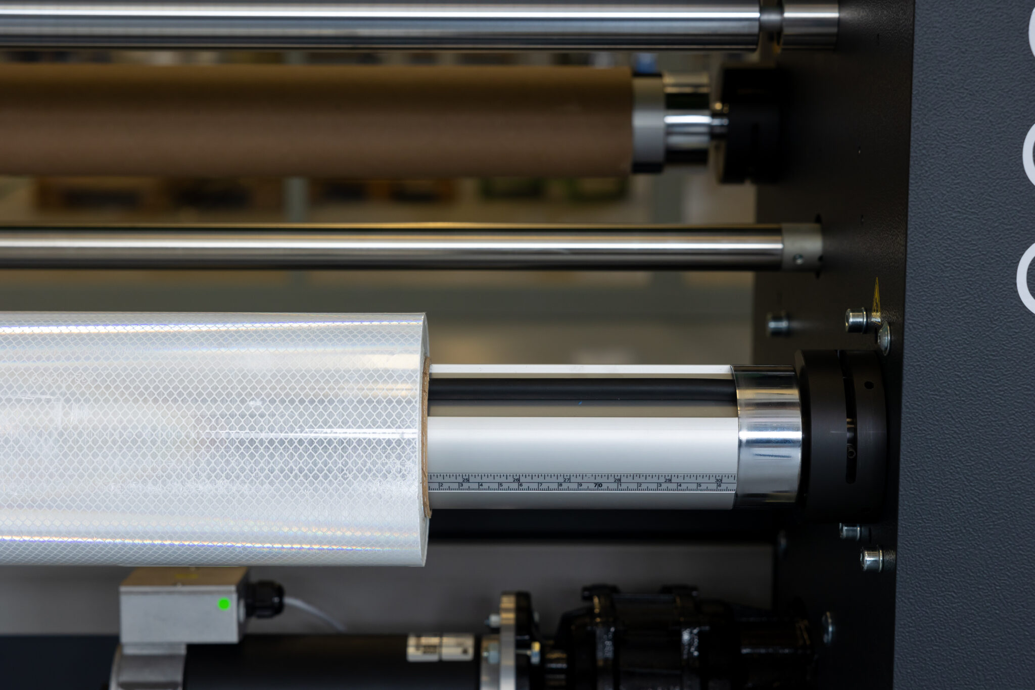 - Material range & capacity: 1,600 mm working width (max. width 1,650 mm), substrate thickness up to 130 mm, 3” cores, roll Ø up to 360 mm, roll weight up to 80 kg